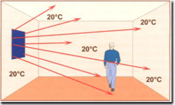 - Όλα τα στερεά σώματα (τοίχοι, δάπεδο, οροφή, έπιπλα, φυτά, ζώα και άνθρωποι ) θερμαίνονται απ' ευθείας.