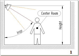 Στη φωτογραφία Νο1 αναφέρουμε τη σωστή θέση του υπέρυθρου θερμαντικού (γωνία=60°-80°), κατά την τοποθέτηση, έτσι ώστε να δεχόμαστε τη θέρμανση στον ώμο μας, όταν εμείς βρισκόμαστε στο κέντρο του δωματίου.